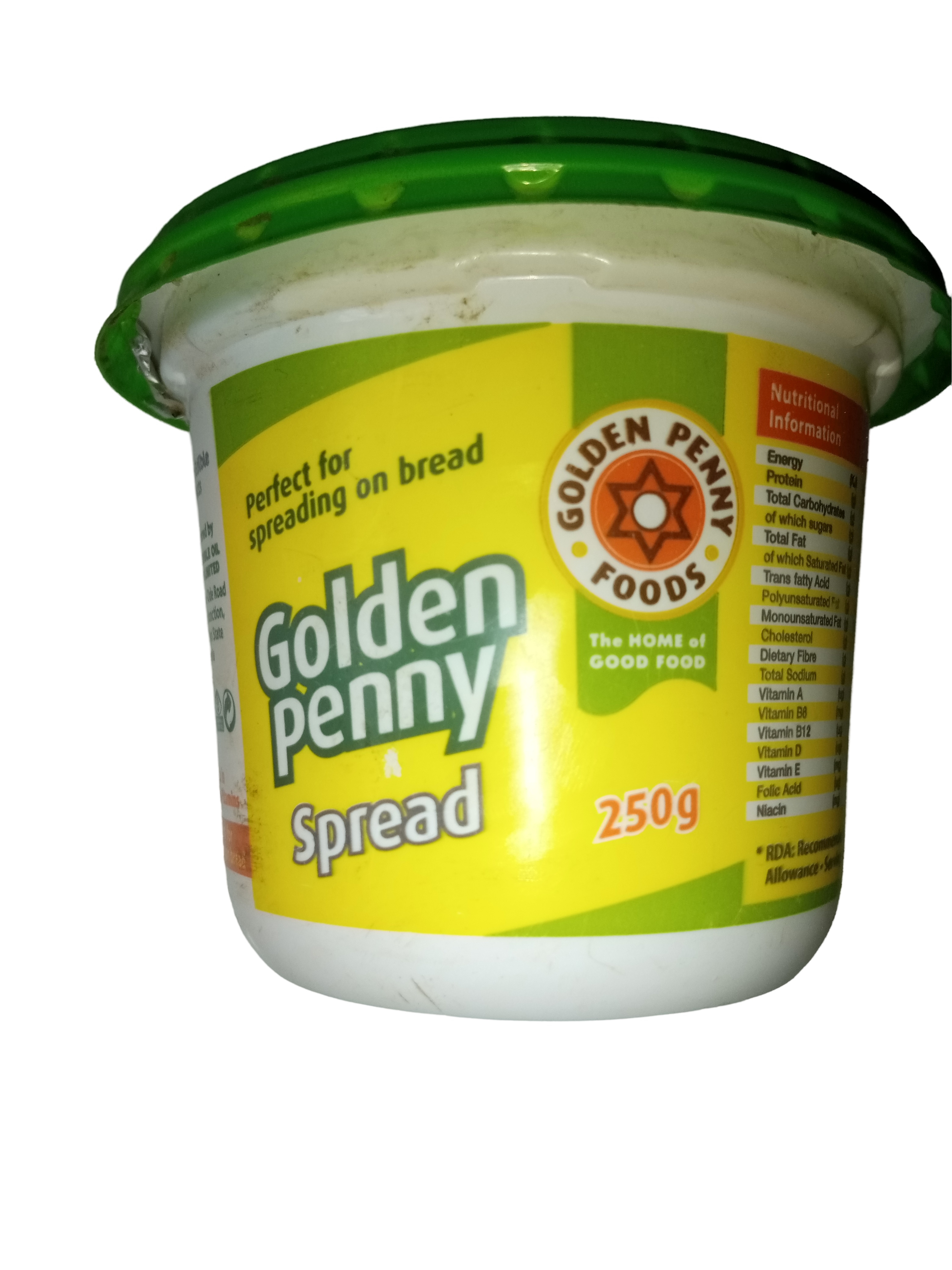 Golden Penny Spread 250g is a butter or margarine spread for bread and cooking.