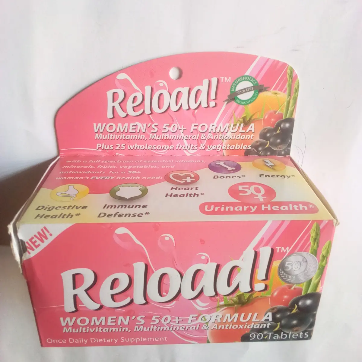 Reload Women’s 50+ is a comprehensive multivitamin for postmenopausal women.